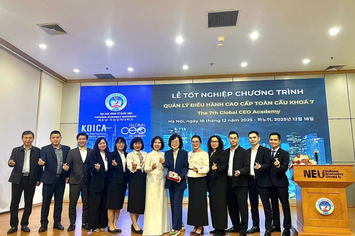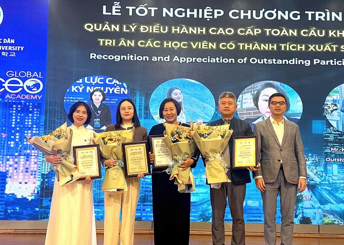 Lễ Tốt nghiệp khóa học Global CEO Academy đã được tổ chức trọng thể, đánh dấu thành công của chương trình đào tạo dành cho đội ngũ lãnh đạo, quản lý cấp cao đến từ Việt Nam và Hàn Quốc. Sự kiện là cột mốc ghi nhận những nỗ lực học tập nghiêm túc và kết quả đáng tự hào của các học viên sau thời gian tham gia chương trình.
