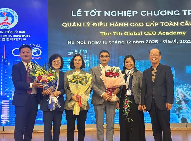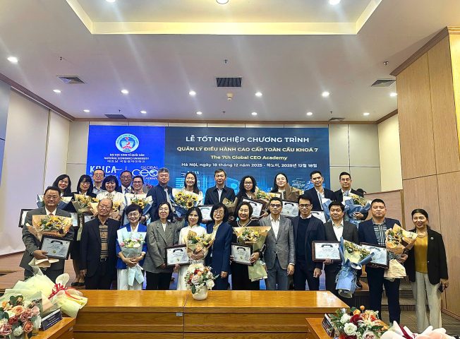 Khóa học do Trung tâm Đào tạo Liên tục – Đại học Kinh tế Quốc dân phối hợp với Cơ quan Hợp tác Quốc tế Hàn Quốc (KOICA) tổ chức, nhằm trang bị kiến thức quản lý quốc tế, phát triển tư duy chiến lược và tầm nhìn toàn cầu trong bối cảnh hội nhập và xu thế chuyển đổi kép (số hóa – xanh hóa). Chương trình kết hợp hài hòa giữa lý luận và thực tiễn, đồng thời chú trọng nâng cao năng lực lãnh đạo, kỹ năng giao tiếp đa văn hóa và khả năng ứng dụng các công nghệ mới trong quản trị doanh nghiệp.
